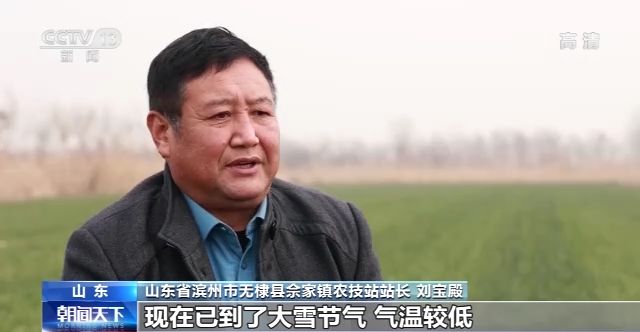 在山東省濱州市無棣縣佘家鎮,4.5萬畝冬小麥長勢喜人,但是受近日寒潮天氣影響,最低氣溫已達到零下五度到零下八度,為了讓冬小麥安全越冬,當地農技專家深入田間地頭,及時指導農民進行田間管理。