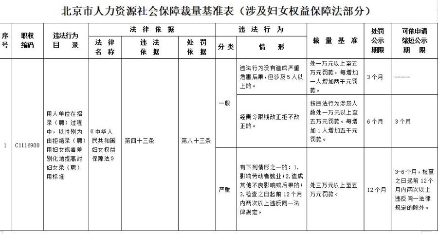 中新網2月3日電 北京市人力資源和社會保障局近日發布關于印發《北京市人力資源社會保障行政處罰裁量基準表(涉及婦女權益保障法部分)》的通知,其中明確,用人單位在招錄(聘)過程中,以性別為由拒絕錄(聘)用婦女或者差別化地提高對婦女錄(聘)用標準,或因結婚、懷孕、產假、哺乳等,降低女職工的工資和福利待遇等行為,最高可處五萬元罰款。(中新財經)