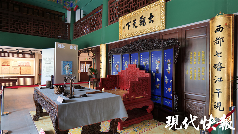 館內鴛鴦廳為“何以狀元”主題展廳,通過實物展品再現古代科舉流程,介紹了一個狀元是如何誕生的。現代快報記者了解到,2001年,在整修鴛鴦廳時,曾在上方發現一方被后人所加“吊頂”遮住的匾。潘世恩高中狀元后,為官五十余年,歷經四朝,深得皇帝恩寵,被譽為“三百年間第一福氣之人”。每逢大壽,皇帝都會親賜御匾。后經專家考證,該匾即是道光皇帝于潘世恩六十大壽之時御筆賞賜的黑底盤龍金書方匾。