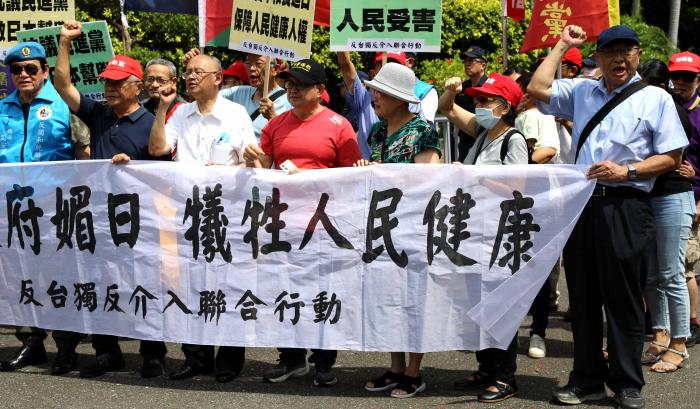 中新網臺北9月6日電 臺灣數十個政黨和團體組成的反“臺獨”反介入聯合行動9月6日在臺北集會,抗議日本將核污染水排入海洋,要求民進黨當局嚴禁從日本核污染地區進口食物。