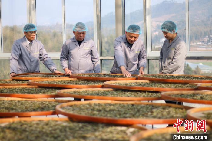 2022年9月11日,福建福鼎茶人正在察看茶葉晾曬情況,趕制“白露茶”。 陳祖貝 攝