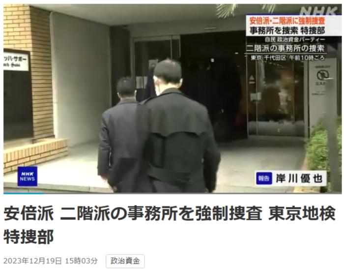 中新網12月19日電 據日本放送協(xié)會(NHK)報道,19日,日本東京地檢特搜部以違反政治資金相關法規(guī)為由,對自民黨安倍派(清和政策研究會)和二階派(志帥會)的辦公場所進行強制搜查。
