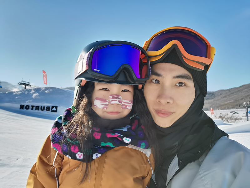 自從女兒開始滑雪后,金彬彬也用手機記錄下了萱萱每天滑雪練習的點點滴滴,并在抖音上更新女兒的滑雪日常?!拜孑鎻男〉酱鬀]有拍過寫真,我喜歡用視頻記錄生活的方方面面,這樣的記錄更真實。”金彬彬至今已經更新了將近300條視頻,其中一條滑雪視頻還被滑雪愛好者謝霆鋒點贊。金彬彬說,不少粉絲也會在線跟他交流討論一些滑雪經驗和技巧,而他也樂于和大家分享。