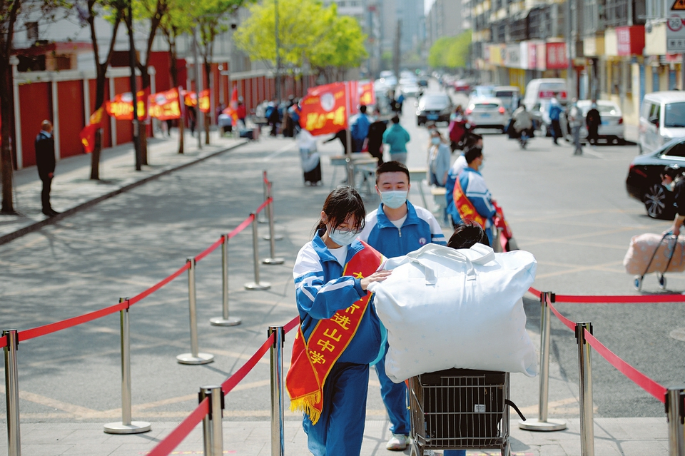 4月20日,太原市進山中學高三學生陸續返校報到,為回校復課做準備。據了解,省城各中學高三年級21日封閉式復課,復課后,師生員工和服務管理人員將實行全封閉管理。(記者阮洋攝)