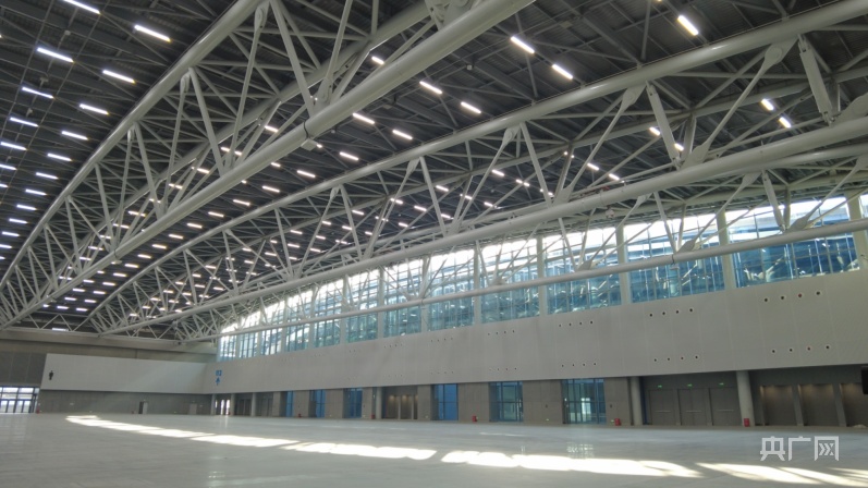 D區設有東西兩個登錄大廳,面積分別為9600、3000㎡,凈高約3.5米,圖為東登錄大廳(央廣網記者 夏燕 攝)