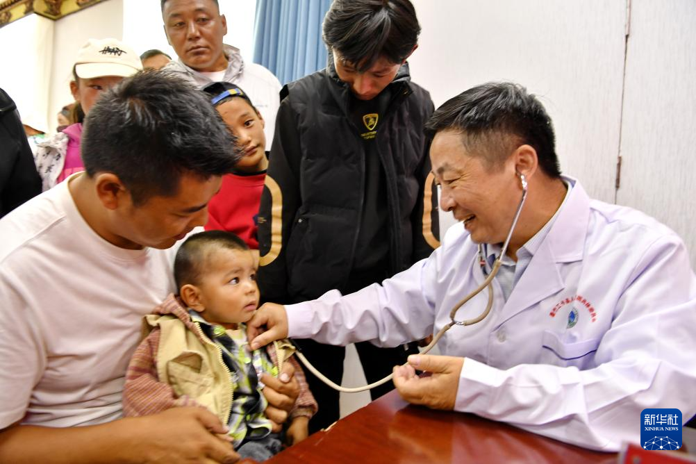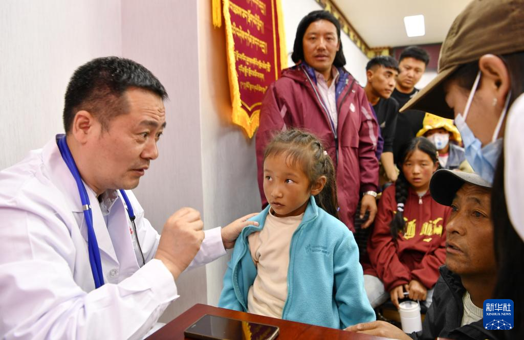 7月23日,南京醫科大學附屬兒童醫院心臟中心主任莫緒明(右)在墨竹工卡縣為兒童體檢。新華社記者 張汝鋒 攝