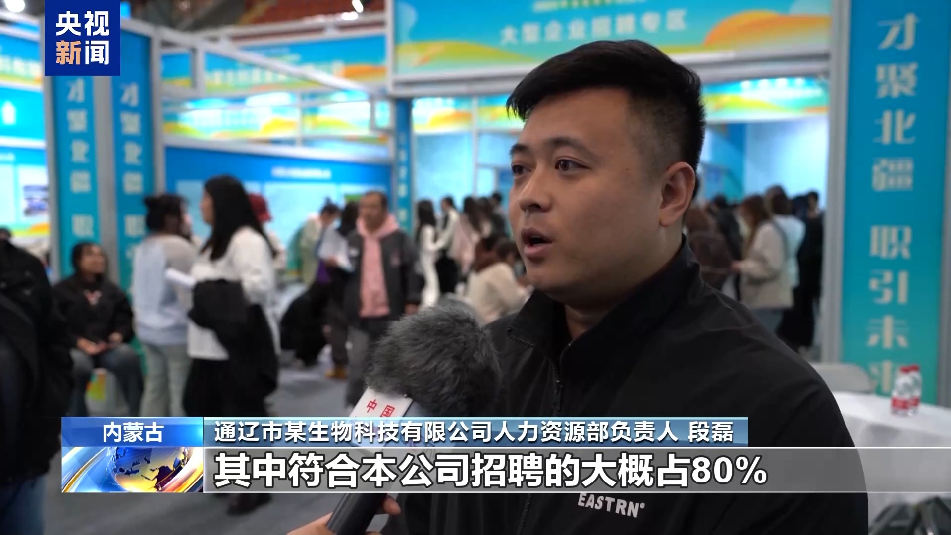 通遼市某生物科技有限公司人力資源部負責人段磊:有意向人員大概有60多人,其中符合本公司招聘的人員大概占80%。篩選通過之后到公司面試,在一個星期內我們就完成人員快速到崗。