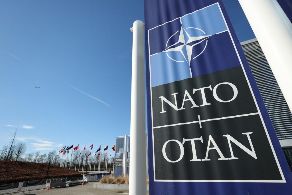 這是3月14日在比利時布魯塞爾拍攝的北約總部一角。新華社記者 趙丁喆 攝