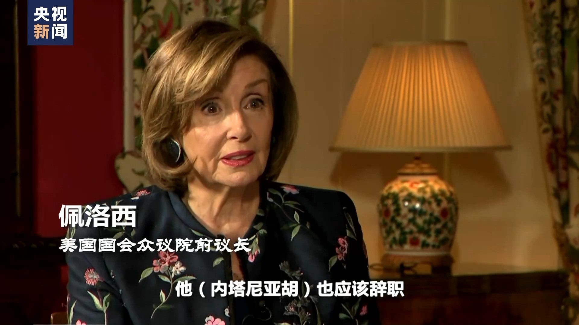 美國國會眾議院前議長 佩洛西:他的情報局局長辭職了,他(內塔尼亞胡)也應該辭職。他是最終的負責人。