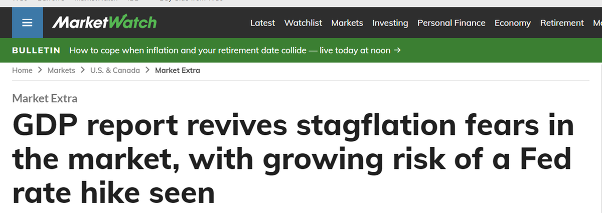 美國商業內幕網站26日報道稱,這份經濟數據對美國來說是個壞消息,因為經濟增長乏力和價格上漲是滯脹的關鍵因素。滯脹的特征是經濟萎靡不振,通脹長期居高不下。這種情況可能比經濟衰退更難應對,因為美聯儲的手腳基本上已被束縛住。