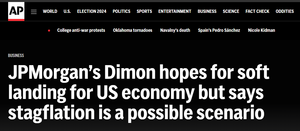 近日,摩根大通公司首席執行官杰米·戴蒙在接受美聯社采訪時稱,他對美國經濟仍保持“審慎”,并表示通脹可能會在更長時間內變得更棘手,“滯脹也可能是(美國經濟面臨的)一種情況”。