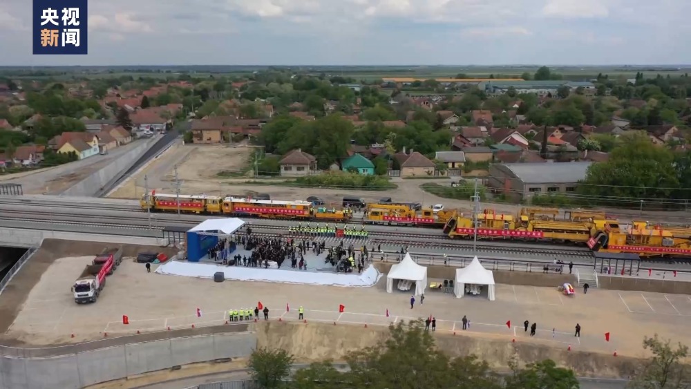 4月下旬,中塞兩國(guó)工人在巴奇卡托波拉站施工現(xiàn)場(chǎng)共同鋪設(shè)最后一組鋼軌,諾維薩德至蘇博蒂察至邊境高速鐵路——也就是“匈塞鐵路諾蘇段”實(shí)現(xiàn)鋪軌貫通。