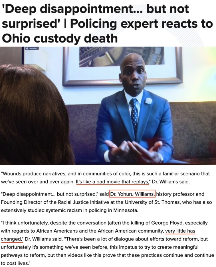 長期從事種族研究的美國圣托馬斯大學歷史學教授、該校種族正義計劃發起人約胡魯·威廉姆斯在接受采訪時表示,他對泰森遇害深感失望,但并不驚訝。