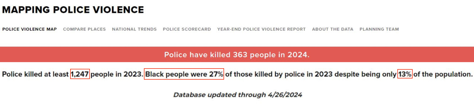 盡管可獲得的數據很不完整,但仍可以發現,警察暴力對非裔美國人產生了不成比例的影響。