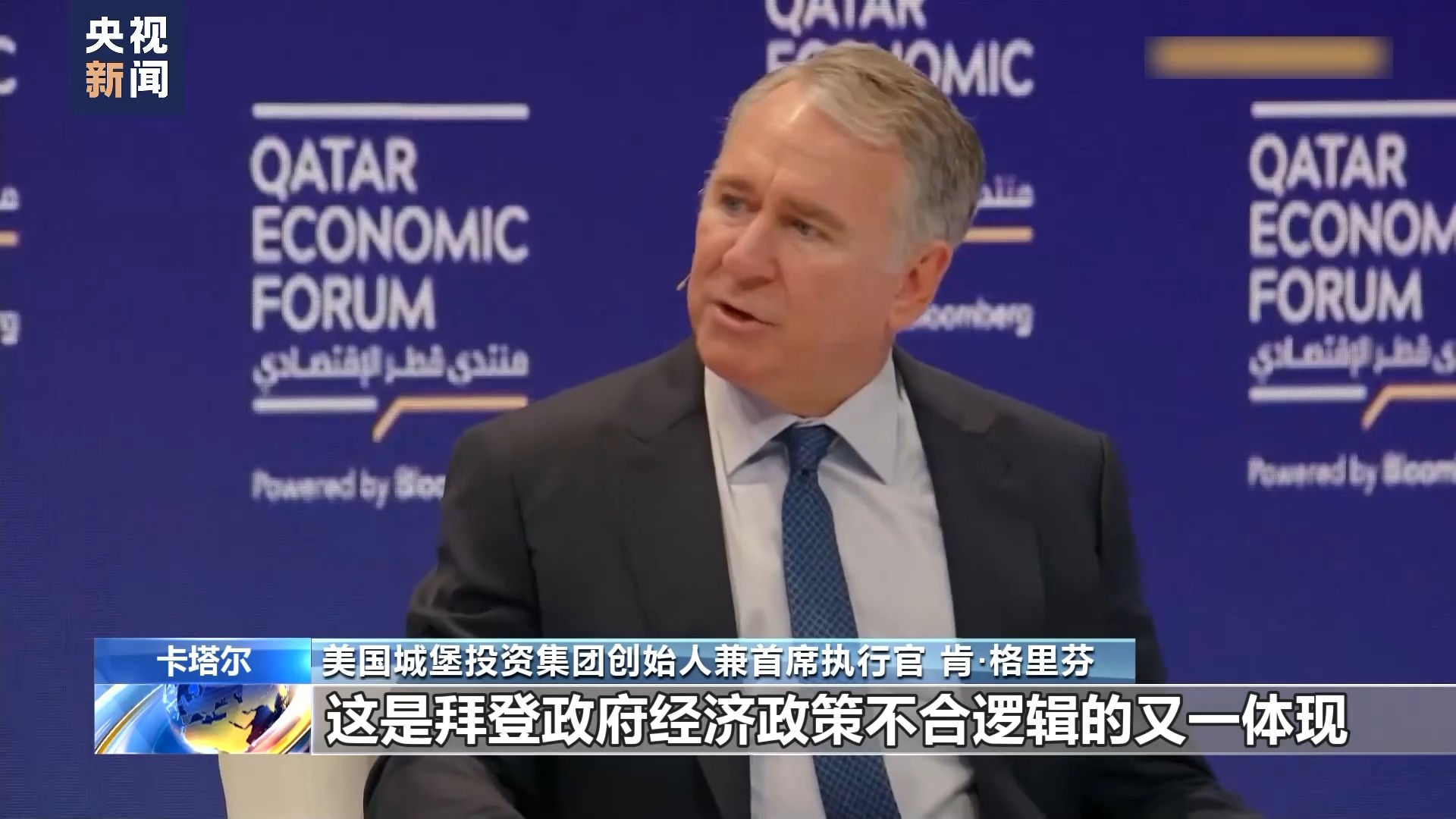 14日,美國城堡投資公司首席執行官肯·格里芬出席卡塔爾經濟論壇時,指出新一輪的加征關稅再次展現了美國現任政府政策的“不合邏輯”,甚至自相矛盾。