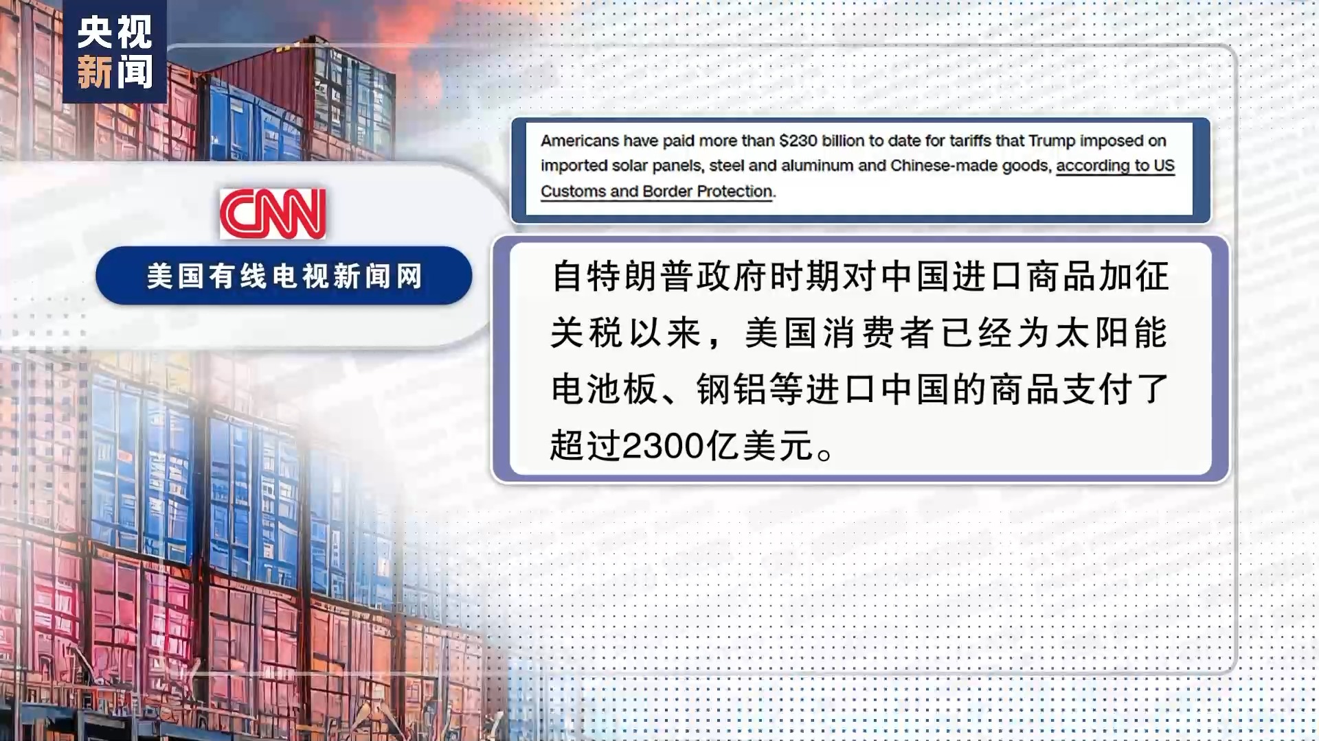 事實證明,美國保護主義措施無一例外只是“回旋鏢”式的自傷游戲。據美國有線電視新聞網3月引用美國海關及邊境保護局數據,自特朗普政府時期對中國進口商品加征關稅以來,美國消費者已經為太陽能電池板、鋼鋁等進口中國的商品支付了超過2300億美元。