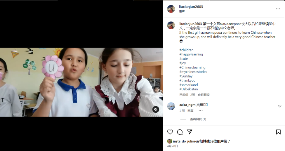 來自老撾的楊世群、菲律賓的黃玉潔、布隆迪的田曉慧和墨西哥的楊衍輝等老師,還分享了各種學習中文的有趣方法,例如情景演繹、唱歌學中文、跟讀練習,獲得了網友們的一致好評。