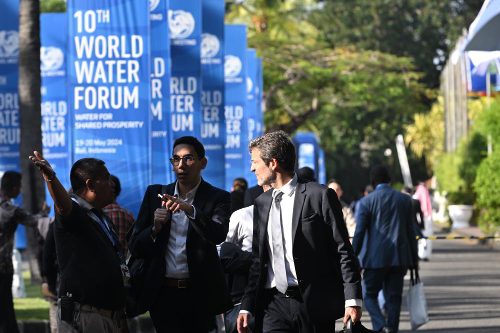 5月20日,在印度尼西亞巴厘島,與會代表準備參加第十屆世界水論壇開幕式。新華社發(維里攝)