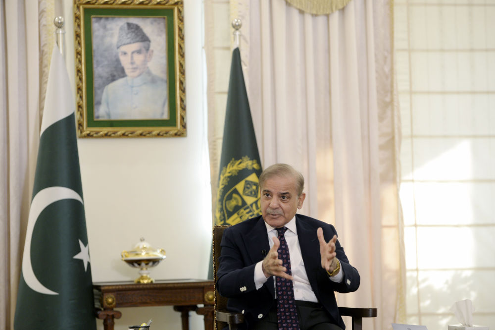 5月30日,巴基斯坦總理夏巴茲·謝里夫在首都伊斯蘭堡的總理府接受中國媒體聯合采訪。新華社發(艾哈邁德·卡邁勒攝)