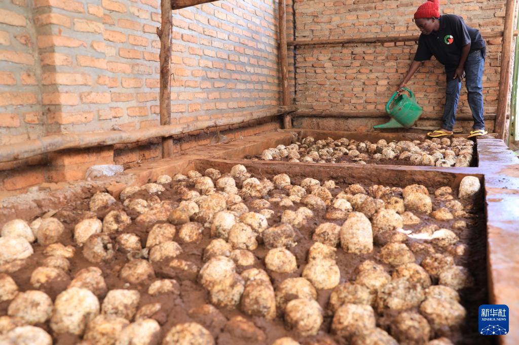 在盧旺達首都基加利,42歲的萊昂尼達斯·穆希米伊馬納經營著當地規模最大的食用菌培育工坊。他曾前往中國參加菌草技術培訓,回國后成立了這家工坊。