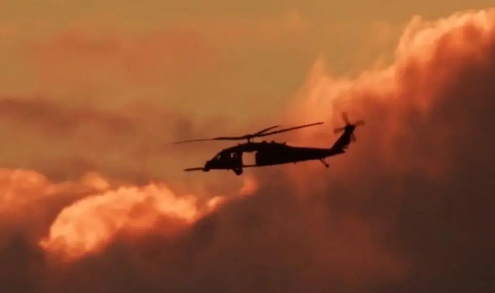 駐歐美軍直升機飛行在夕陽中。圖/《今日美國報》網站