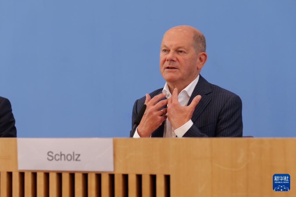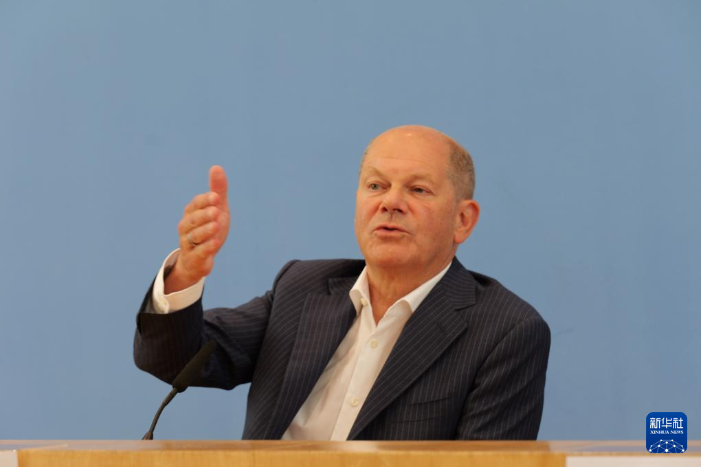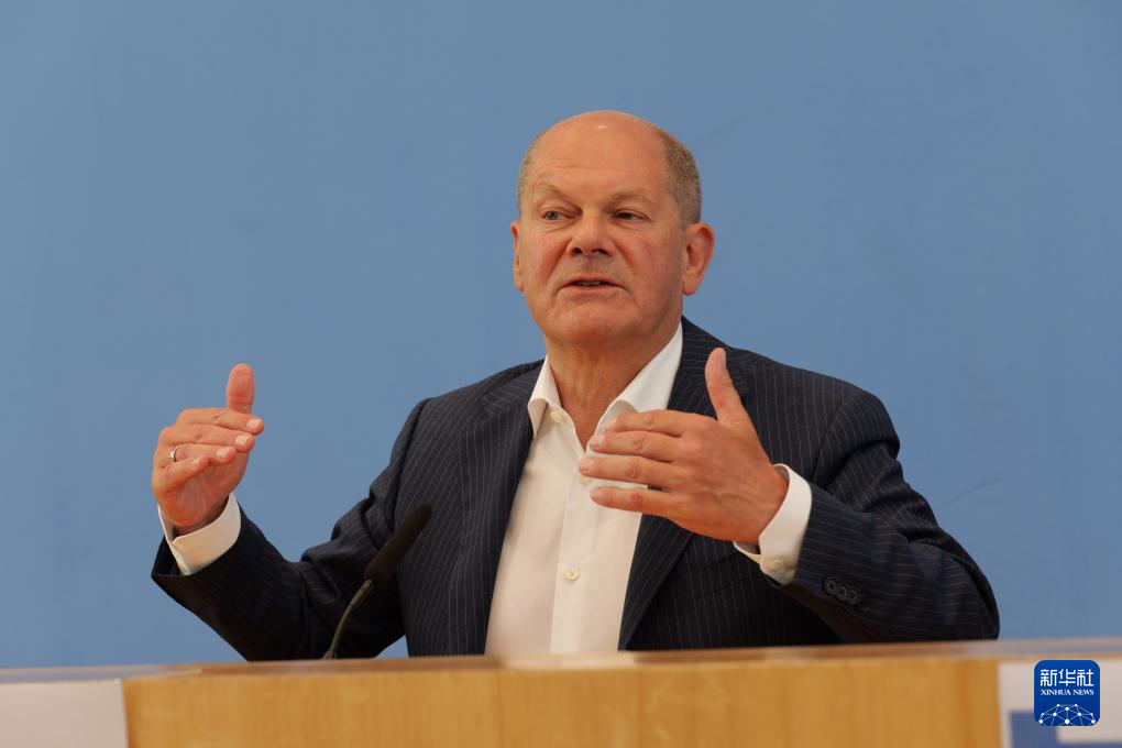 7月24日,德國總理朔爾茨在柏林舉行的新聞發布會上講話。新華社記者 李函林 攝