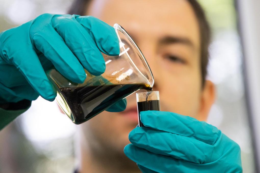 2022年5月24日,在匈牙利薩茲豪隆包陶多瑙河煉油廠,一名工人對通過阿德里亞輸油管道運達的原油樣品進行質量分析。新華社發(弗爾季·奧蒂洛攝)