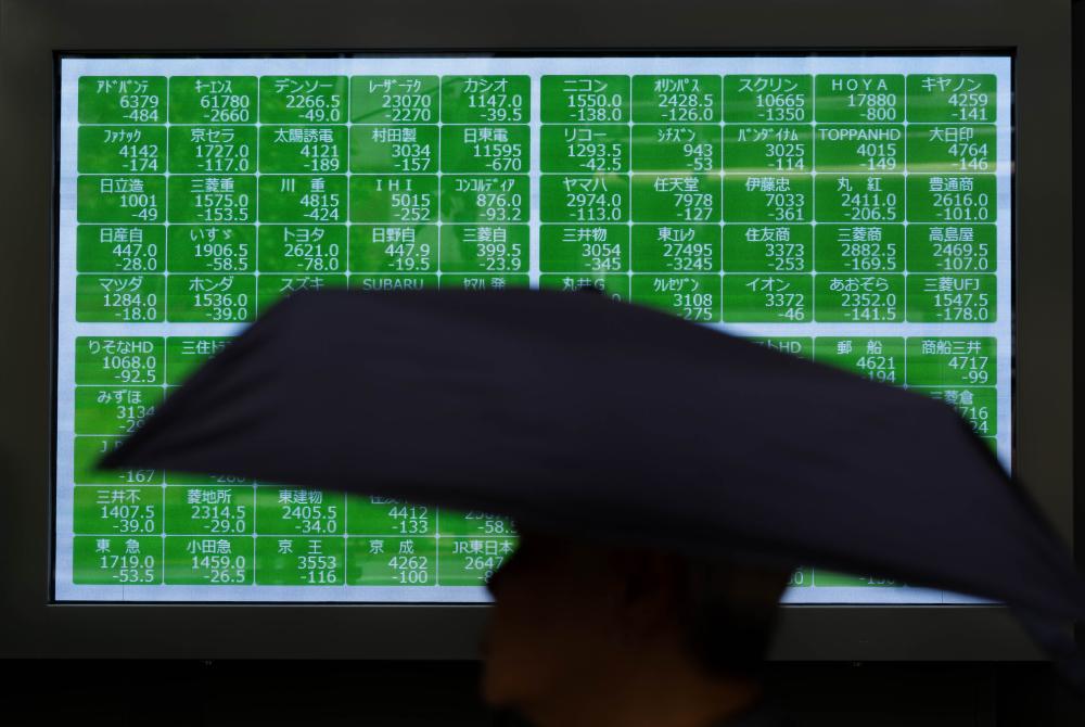 8月2日,在日本東京,行人經過一處股指信息電子顯示屏。新華社記者張笑宇攝