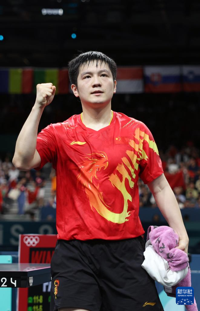 8月9日,樊振東在獲勝后慶祝。新華社記者 劉續(xù) 攝