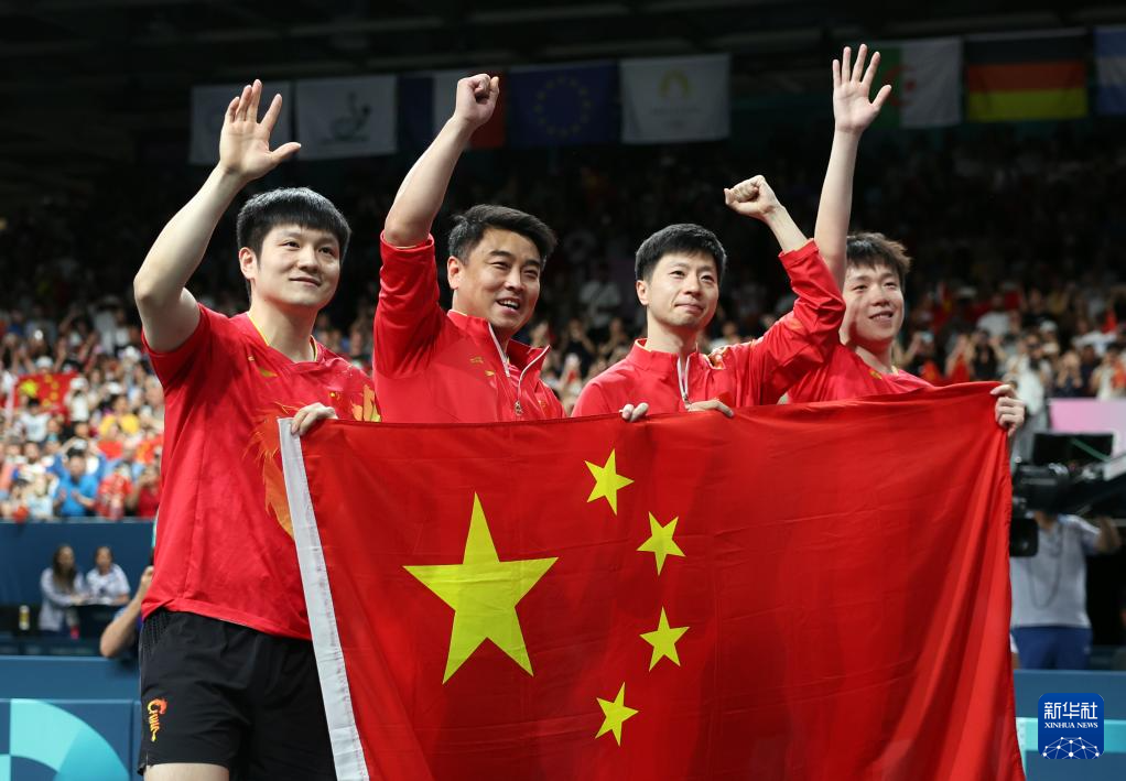 當日,在巴黎奧運會乒乓球男團金牌賽中,中國隊戰(zhàn)勝瑞典隊,獲得冠軍。