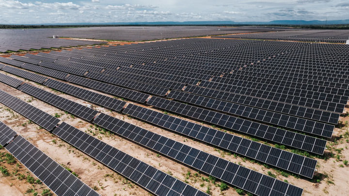 這是2024年6月7日在巴西皮奧伊州拍攝的馬蘭加圖光伏電站(無(wú)人機(jī)照片)。新華社記者 王天聰 攝