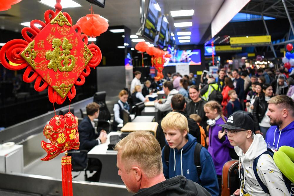 9月28日,在俄羅斯韃靼斯坦共和國喀山國際機場,搭乘喀山至上海直飛航班的乘客辦理值機。新華社記者曹陽攝