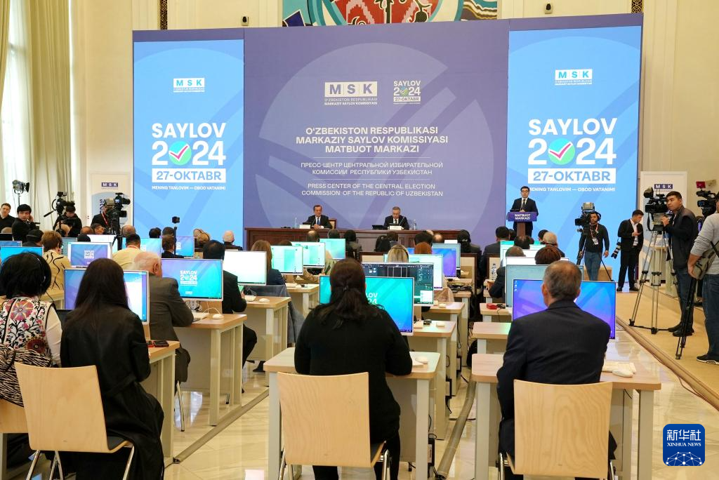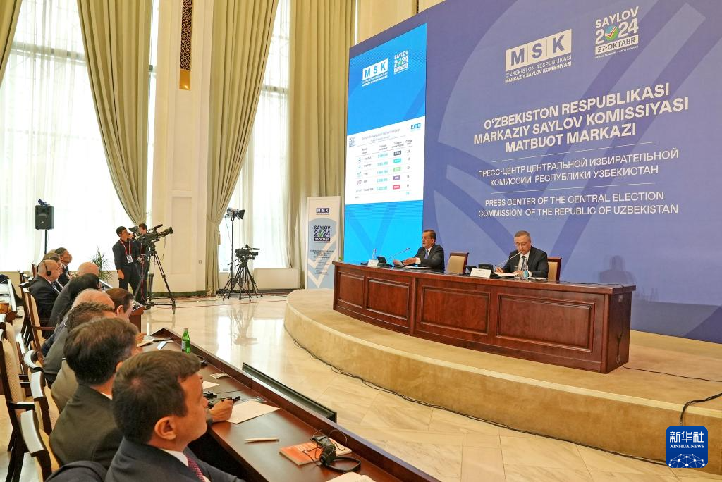 10月28日,烏茲別克斯坦中央選舉委員會在首都塔什干舉行新聞發布會。新華社發(扎法爾攝)