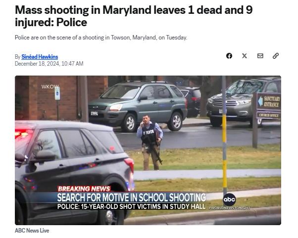 突發!美國馬里蘭州發生大規模槍擊案 致1死9傷