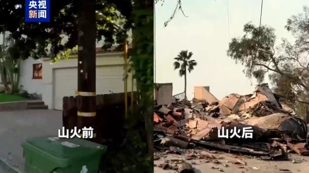 從對比畫面可以看出,到處都是殘垣斷壁和燒毀的汽車,大量建筑外墻被燒黑,還有不少房屋被大火夷為平地。