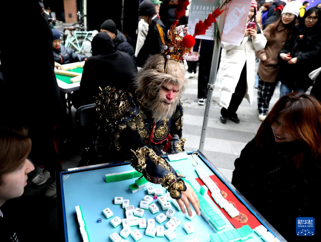 今年,倫敦卡姆登集市首次舉辦了中國春節慶典活動。喜慶的春節燈飾高高懸掛,在微風中輕輕搖曳;空氣中彌漫著中式點心的香氣,令人垂涎欲滴。人群中,偶爾可見漢服衣袂翩然掠過,許多人手中還拿著紅色的燈籠和“福”字。在慶典活動上,當地市民珍妮·米爾沃德一邊喊著“碰”,一邊開心地將麻將桌上的“南風”牌收到面前。她不僅自己打得得心應手,還不時給身邊的新手講解規則。