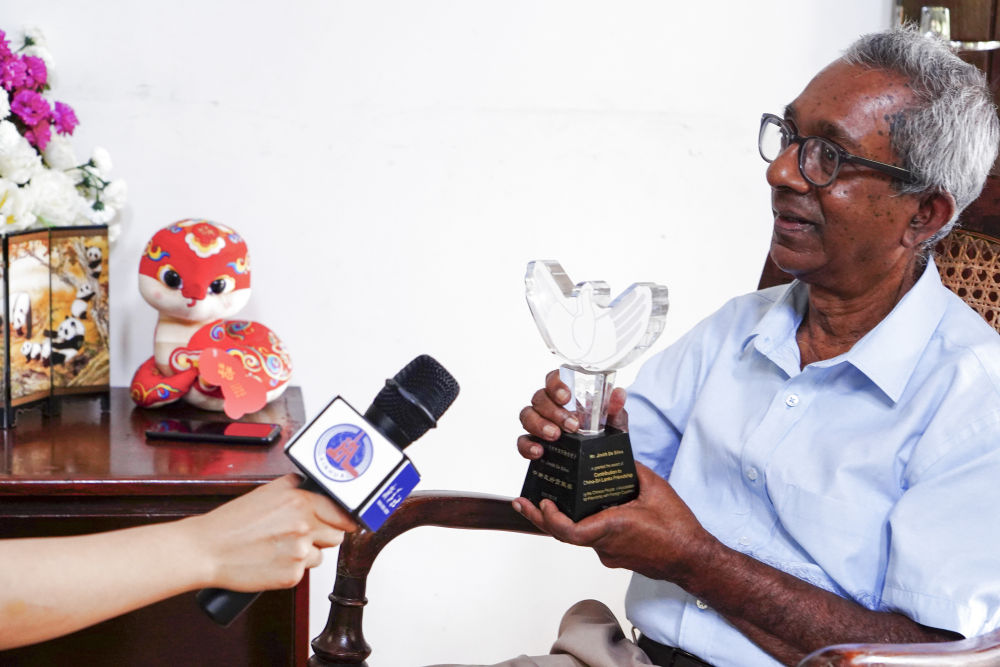 1月30日,在斯里蘭卡首都科倫坡,斯里蘭卡中國協會主席吉尼斯·德席爾瓦接受新華社記者采訪。