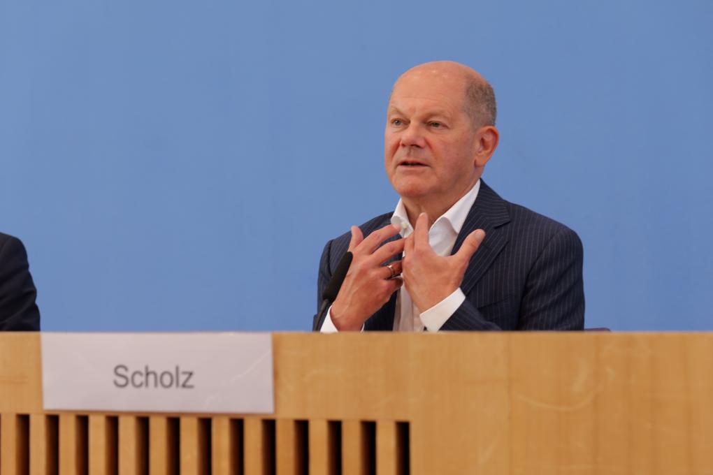 2024年7月24日,德國總理朔爾茨在柏林舉行的新聞發布會上講話。新華社記者李函林攝
