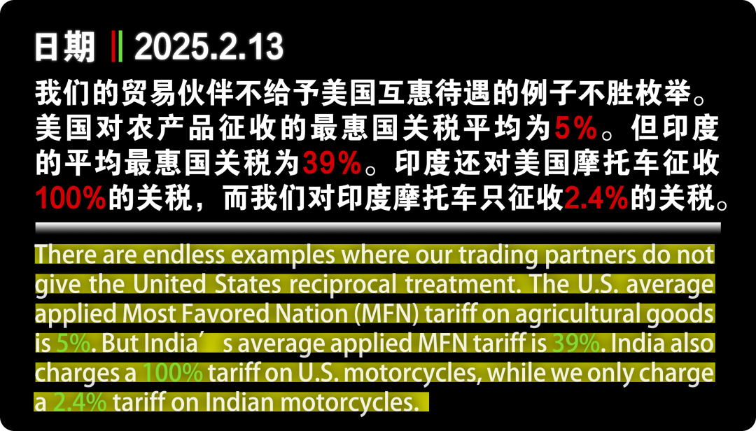 當(dāng)?shù)貢r間2月13日,特朗普宣布了最新的關(guān)稅決定:在未來幾周或幾個月內(nèi)對其他國家加征“對等關(guān)稅”。這意味著,美國的貿(mào)易伙伴,全部面臨著新的關(guān)稅威脅。