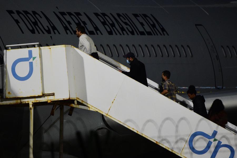2025年2月7日,在巴西東北部塞阿拉州福塔萊薩市,被美國驅逐出境的第二批巴西非法移民登上一架巴西空軍飛機。新華社發 盧西奧·塔沃拉 攝