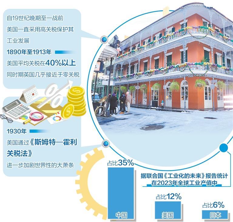 19世紀(jì)70年代后,保護(hù)性關(guān)稅逐漸成為國際政治的重要工具。美國自19世紀(jì)晚期到一戰(zhàn)之前一直采用高關(guān)稅保護(hù)自己的工業(yè)發(fā)展。1890年至1913年,美國的平均關(guān)稅在40%以上,而同時期其他主要工業(yè)國的關(guān)稅都很低,當(dāng)時的世界經(jīng)濟(jì)霸主英國更是接近于零關(guān)稅。1930年美國通過了《斯姆特—霍利關(guān)稅法》,引發(fā)其他國家針鋒相對的報復(fù),進(jìn)一步加劇了世界性的大蕭條。20世紀(jì)80年代,激烈的美日貿(mào)易摩擦后簽署“廣場協(xié)議”,被大多數(shù)學(xué)者認(rèn)為是導(dǎo)致日本后來長期經(jīng)濟(jì)低迷的主要原因。在這些案例中,作為制造業(yè)大國的美國制造貿(mào)易摩擦是為了與他國競爭,保護(hù)本國相關(guān)產(chǎn)業(yè),避免在競爭中被外國企業(yè)擊敗。