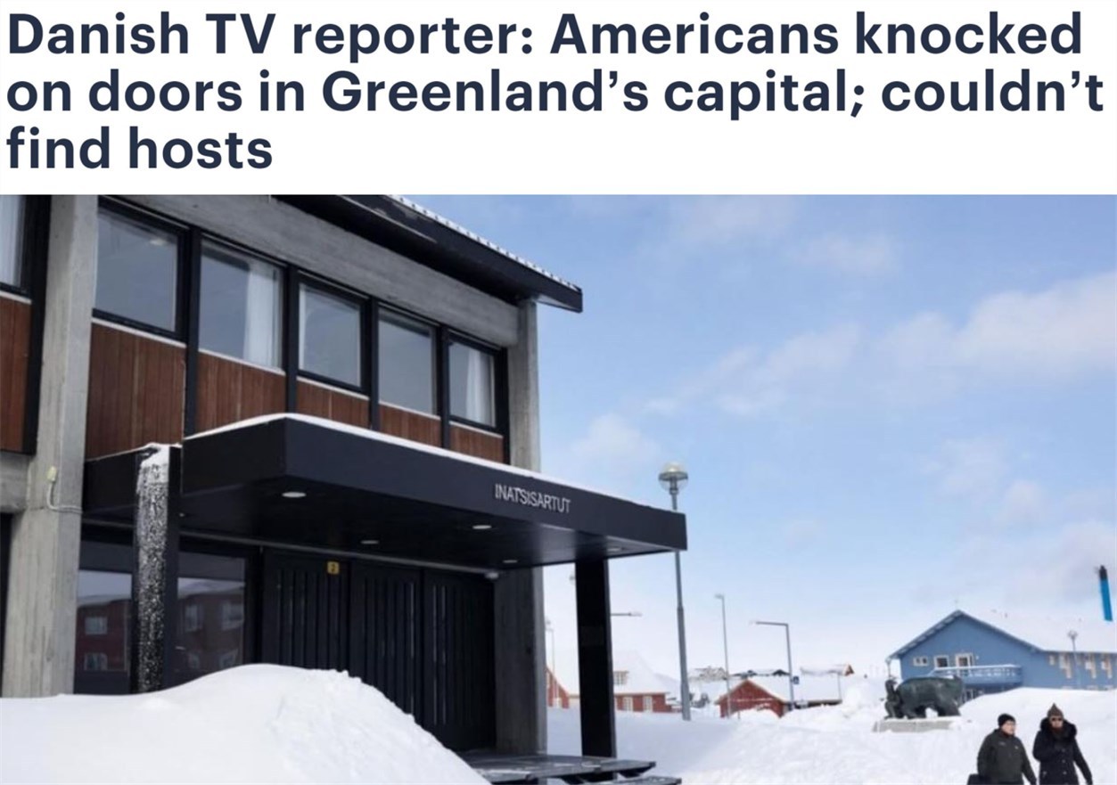 據(jù)丹麥電視二臺記者賈斯珀·斯坦梅茨在節(jié)目中披露,萬斯率領(lǐng)的代表團出發(fā)之前,美國政府已秘密派人到格陵蘭島相關(guān)地區(qū)“做工作”,希望當?shù)孛癖姎g迎萬斯一行,但卻碰了一鼻子灰。