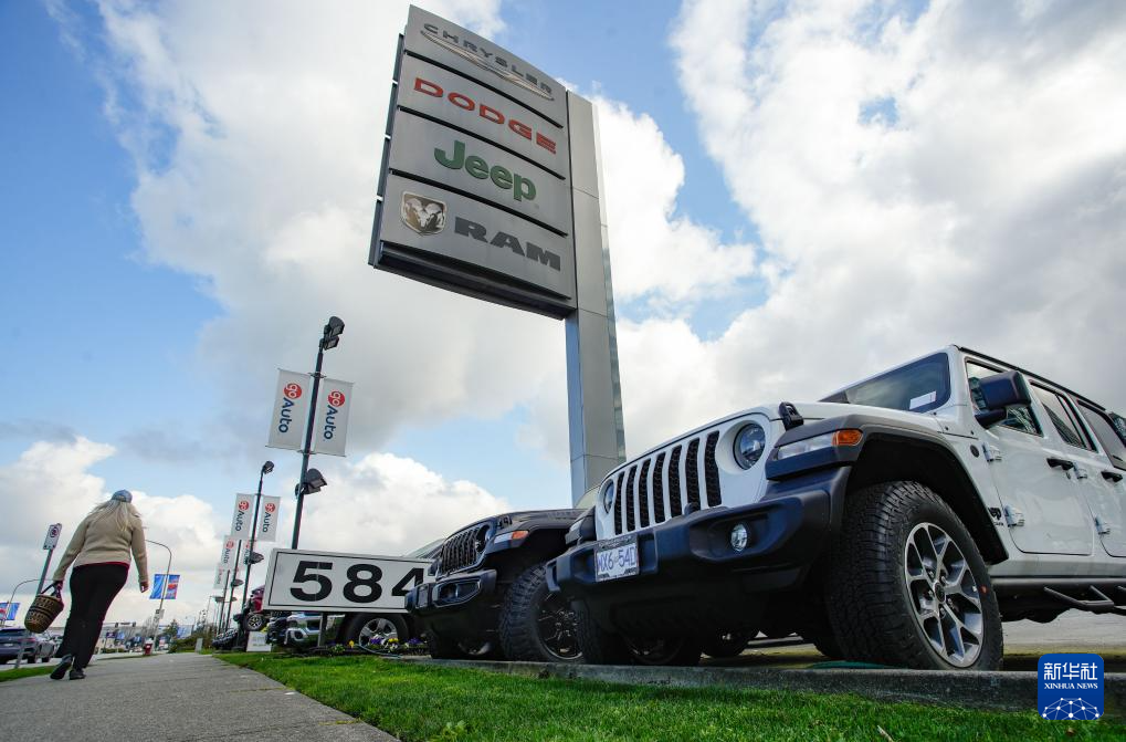 4月3日,車輛陳列在加拿大溫哥華的汽車經銷商店面外。新華社發(梁森攝)