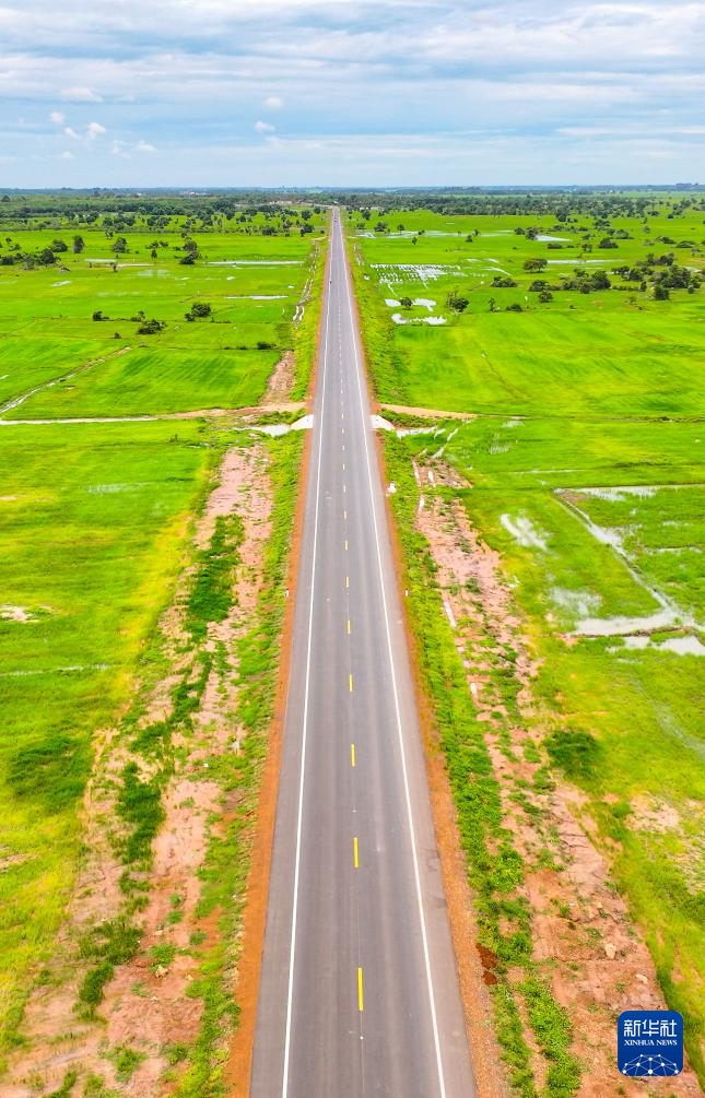 這是2024年7月14日在柬埔寨特本克蒙省拍攝的71C號國家公路(無人機照片)。新華社發(尼多拉攝)