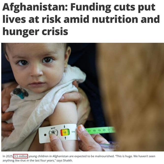 美國此前承擔了阿富汗國際人道援助資金的43%。然而,其資金鏈的突然斷裂導致當地關鍵人道主義項目被迫停擺,食品供應銳減。