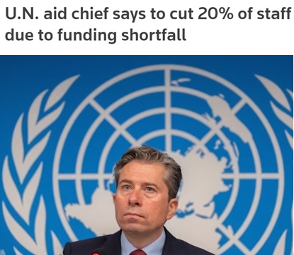 聯合國人道主義事務協調廳近日發表公開信說,由于資金遭遇“殘酷削減”,尤其是美國政府大幅叫停對外援助,該機構將不得不裁撤20%、即500多名工作人員。