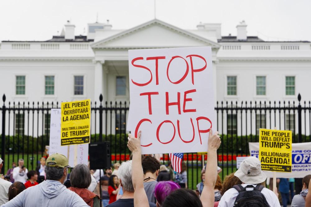 4月19日,人們在美國首都華盛頓白宮門前參加抗議活動。美國多地19日舉行抗議活動,首都華盛頓、紐約、舊金山、波士頓等城市的民眾走上街頭,抗議現(xiàn)政府大規(guī)模裁員、加征關稅、驅(qū)逐移民等政策。新華社發(fā)(亞倫攝)