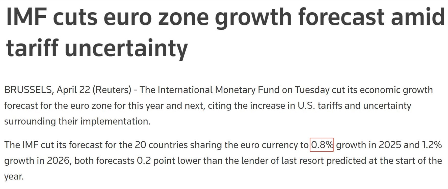根據國際貨幣基金組織22日發布的最新一期《世界經濟展望報告》,受美國關稅措施沖擊和政策不確定性的影響,今年歐元區經濟增長率預計將比之前下調0.2個百分點至0.8%。