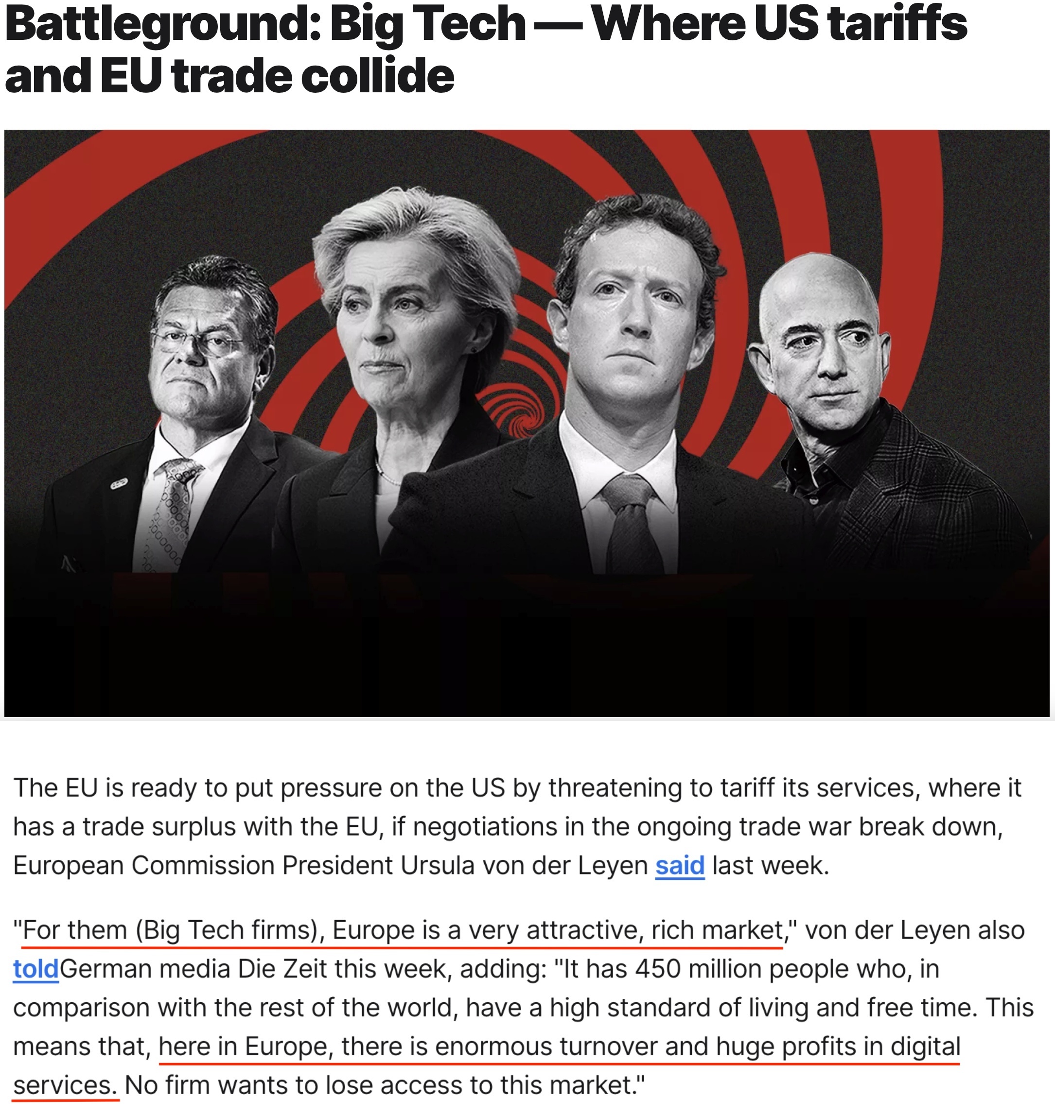“對它們(美國大型科技公司)來說,歐洲是一個非常有吸引力的多金市場。”