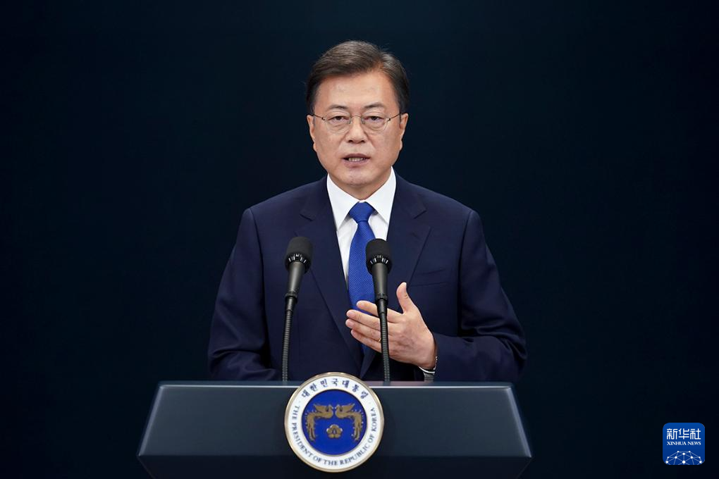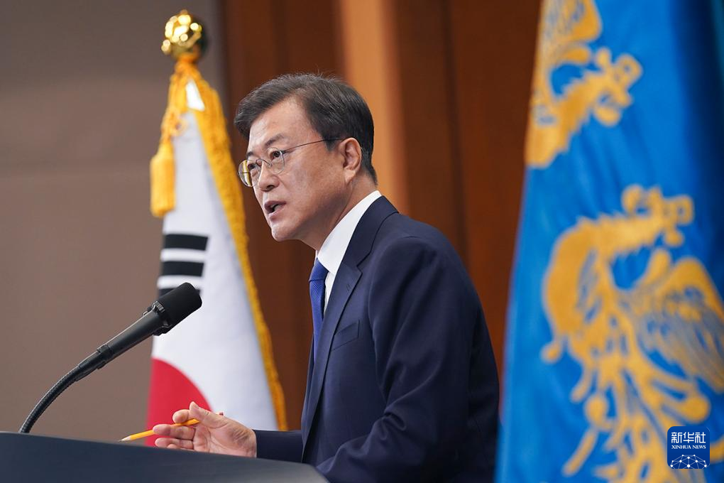 據韓聯社4月24日報道,韓國前總統文在寅因涉嫌受賄被檢方提起訴訟。這張拍攝于2020年5月10日的資料照片顯示,時任韓國總統文在寅在韓國首爾青瓦臺發表講話。新華社發(青瓦臺供圖)